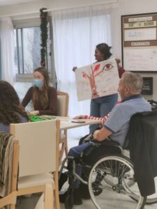 Le 18/12/2025 juste avant les vacances de Noël, une classe de 3ème du collège la Présentation de Marie a été convié par l’animatrice de l’EHPAD à participer avec les résidents à la création d’une fresque des émotions.