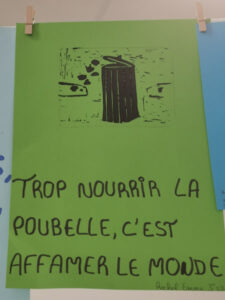 Dans ce cadre, les élèves de 3ème ont eu l’opportunité de découvrir la technique de la linogravure en cours d’Arts plastiques et de créer une affiche de sensibilisation sur l’un des 17 Objectifs de Développement Durable des Nations Unies : lutte contre la faim, lutte contre la pauvreté, préservation des fonds marins, préservation de la faune, accès à la santé, accès à l’eau, égalité hommes femmes, justice et paix, etc.